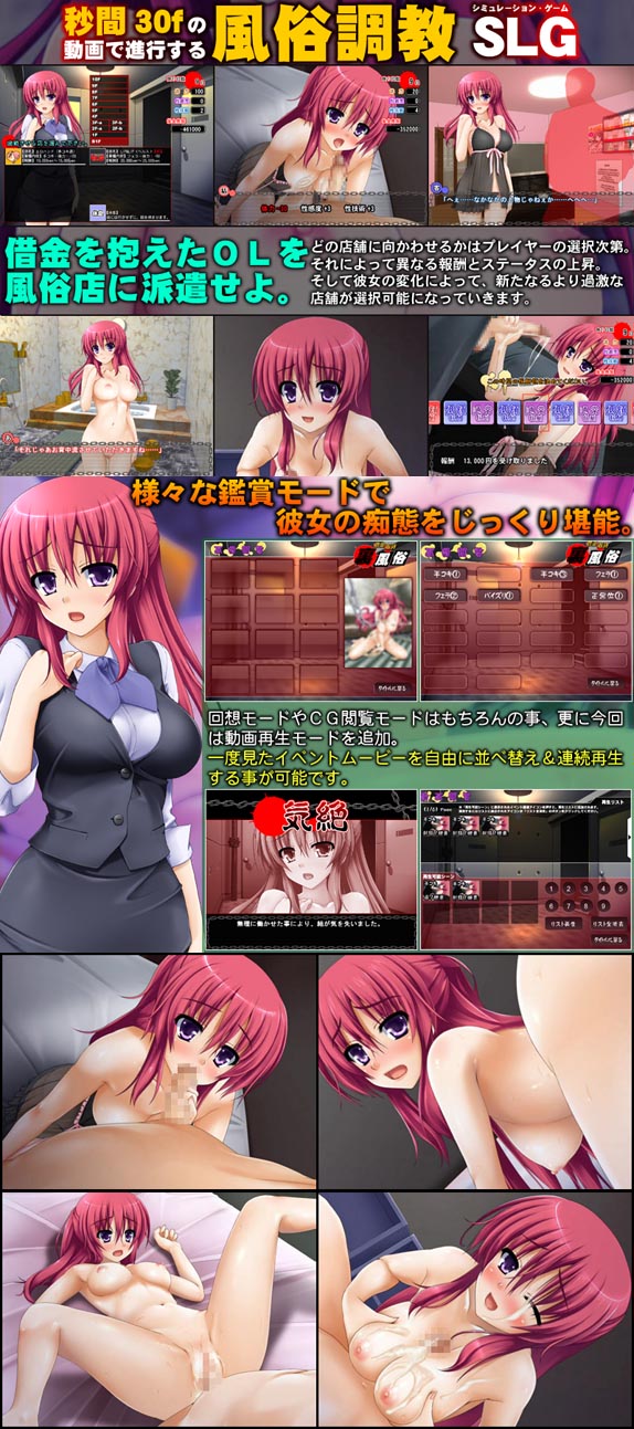借金を抱えたOL『結』に金を稼がせる事がプレイヤーの目的。彼女に自由な源氏名を付けて、各風俗店へ派遣。最初は簡単な店にしか行く事はできないが、彼女の成長と共に更に高い店へ行くことが可能になっていきます。無事借金を返済して元のOLとして自由の身になるか、失敗して破滅の道を辿る事になるのか……